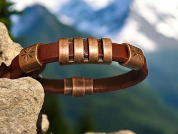 Rich brown licorice leather bracelet with copper sliders and clasp.